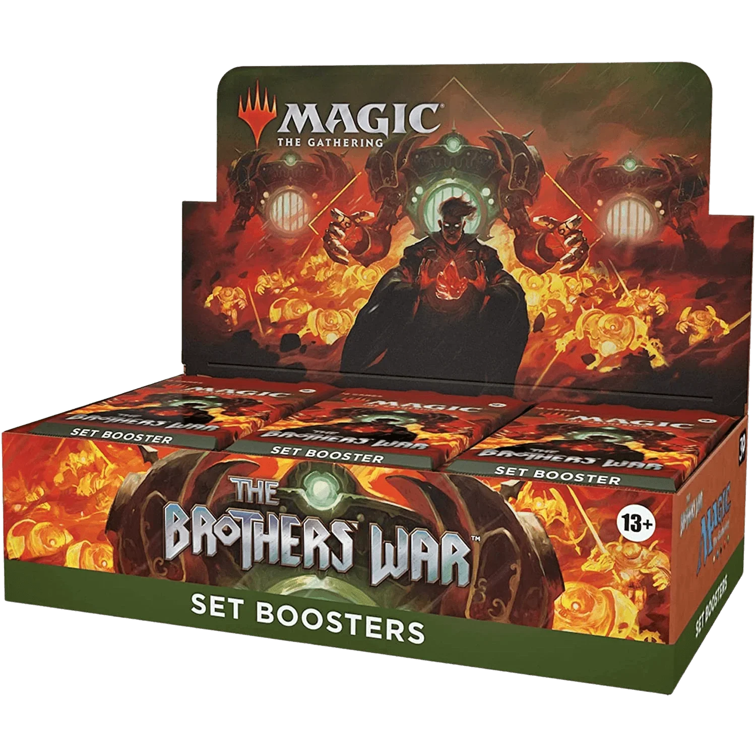 The Brothers’ War Set Booster Box contains 30 The Brothers’ War Set Boosters. Each Set Booster contains 12 Magic cards, 1 Art Card, and 1 token/ad card or card from “The List” (a special card from Magic's history—found in 25% of packs).