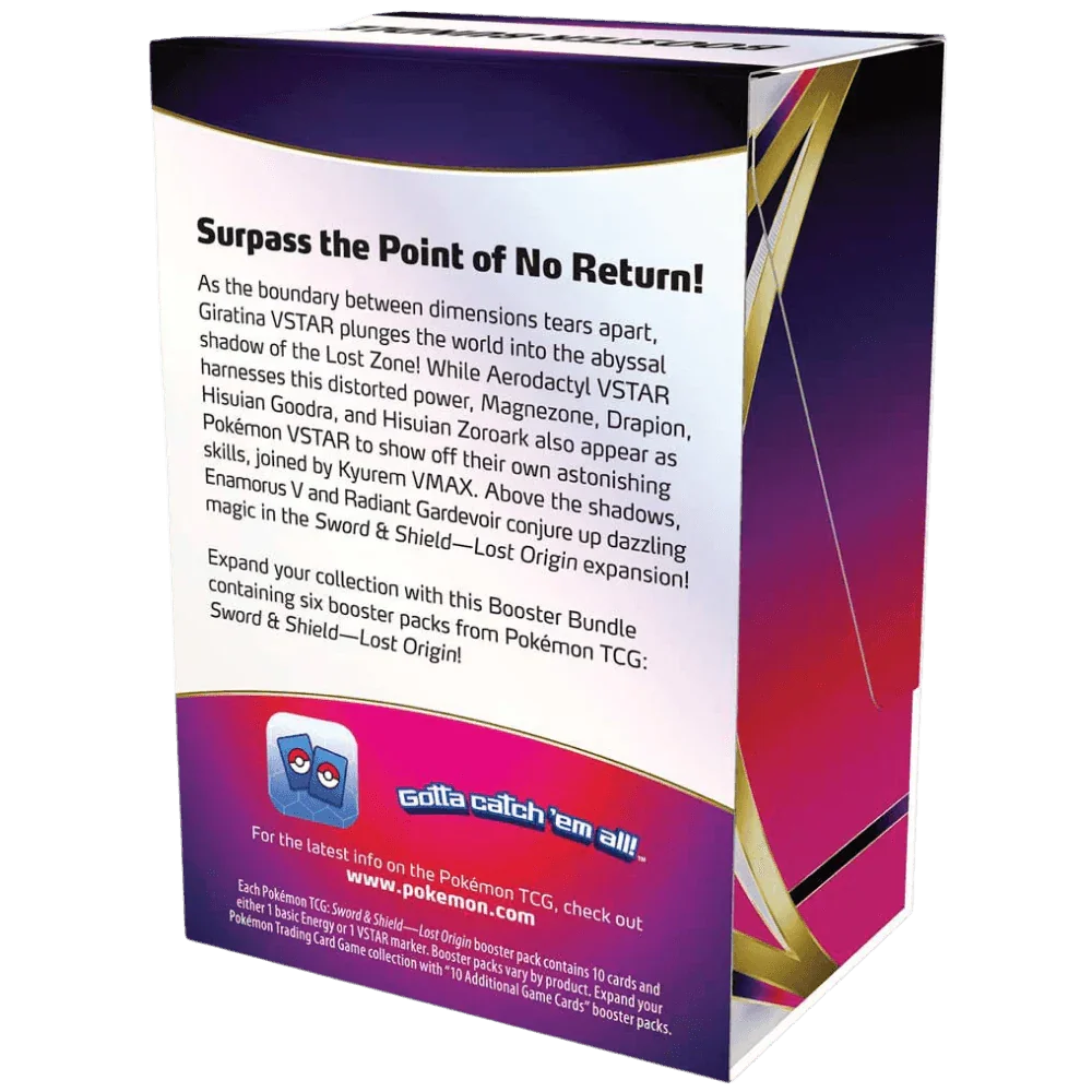 As the boundary between dimensions tears apart, Giratina VSTAR plunges the world into the abyssal shadow of the Lost Zone! While Aerodactyl VSTAR harnesses this distorted power, Magnezone, Drapion, Hisuian Goodra, and Hisuian Zoroark also appear as Pokémon VSTAR to show off their own astonishing skills, joined by Kyurem VMAX. Above the shadows, Enamorus V and Radiant Gardevoir conjure up dazzling magic in the Sword & Shield—Lost Origin expansion!