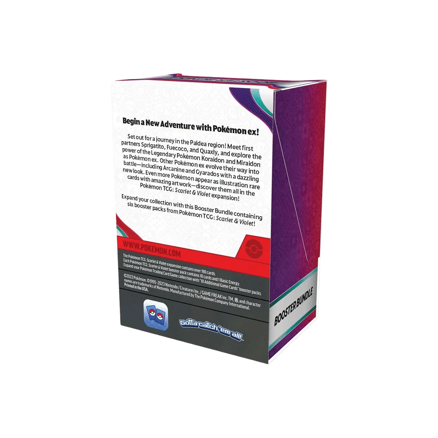 Set out for a journey in the Paldea region! Meet first partners Sprigatito, Fuecoco, and Quaxly, and explore the power of the Legendary Pokémon Koraidon and Miraidon as Pokémon ex. Other Pokémon ex evolve their way into battle—including Arcanine and Gyarados with a dazzling new look. Even more Pokémon appear as illustration rare cards with amazing artwork—discover them all in the Pokémon TCG: Scarlet & Violet expansion!