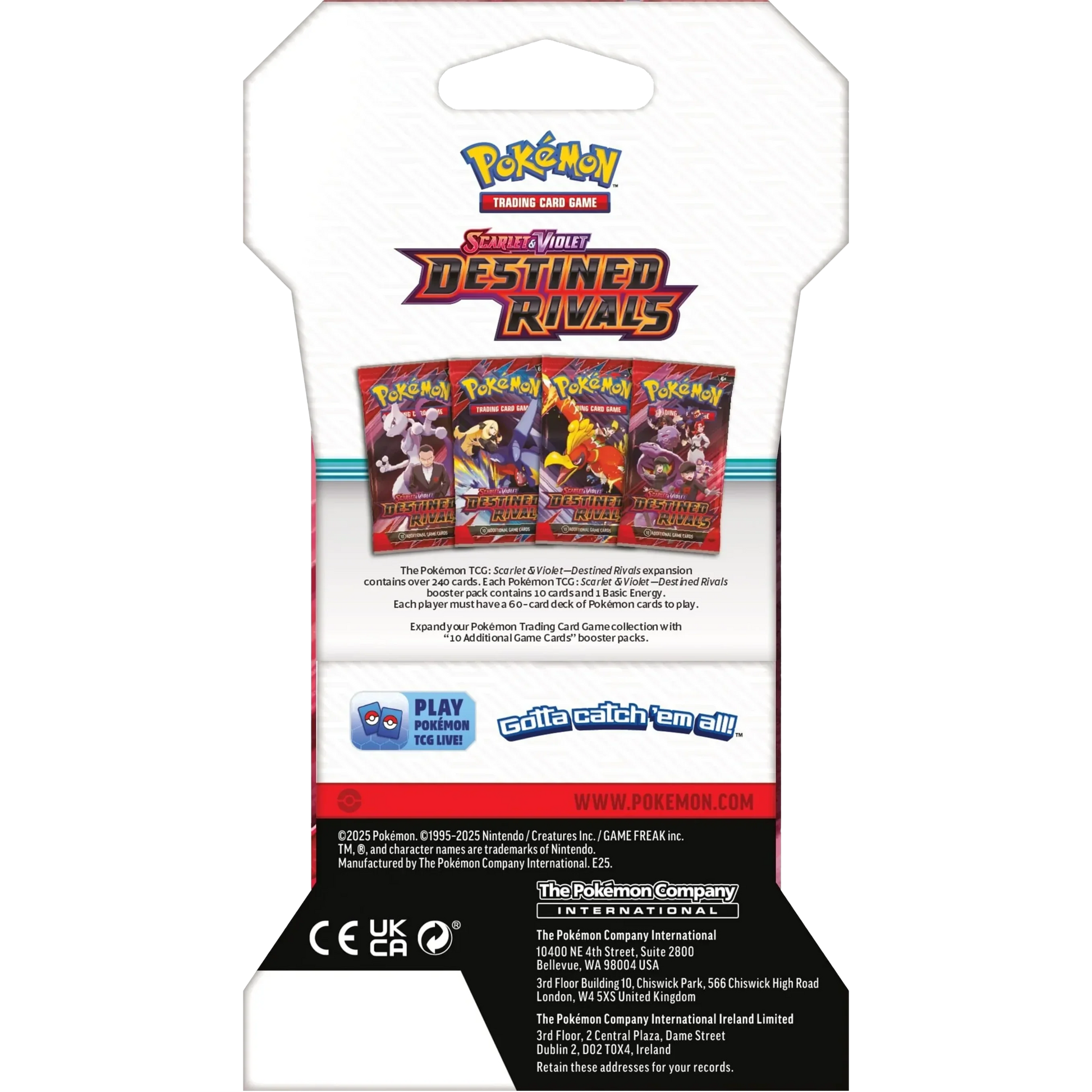 - Each Pokémon TCG: Scarlet & Violet - Destined Rivals sleeved booster pack contains 10 cards and 1 Basic Energy. Cards vary by pack.