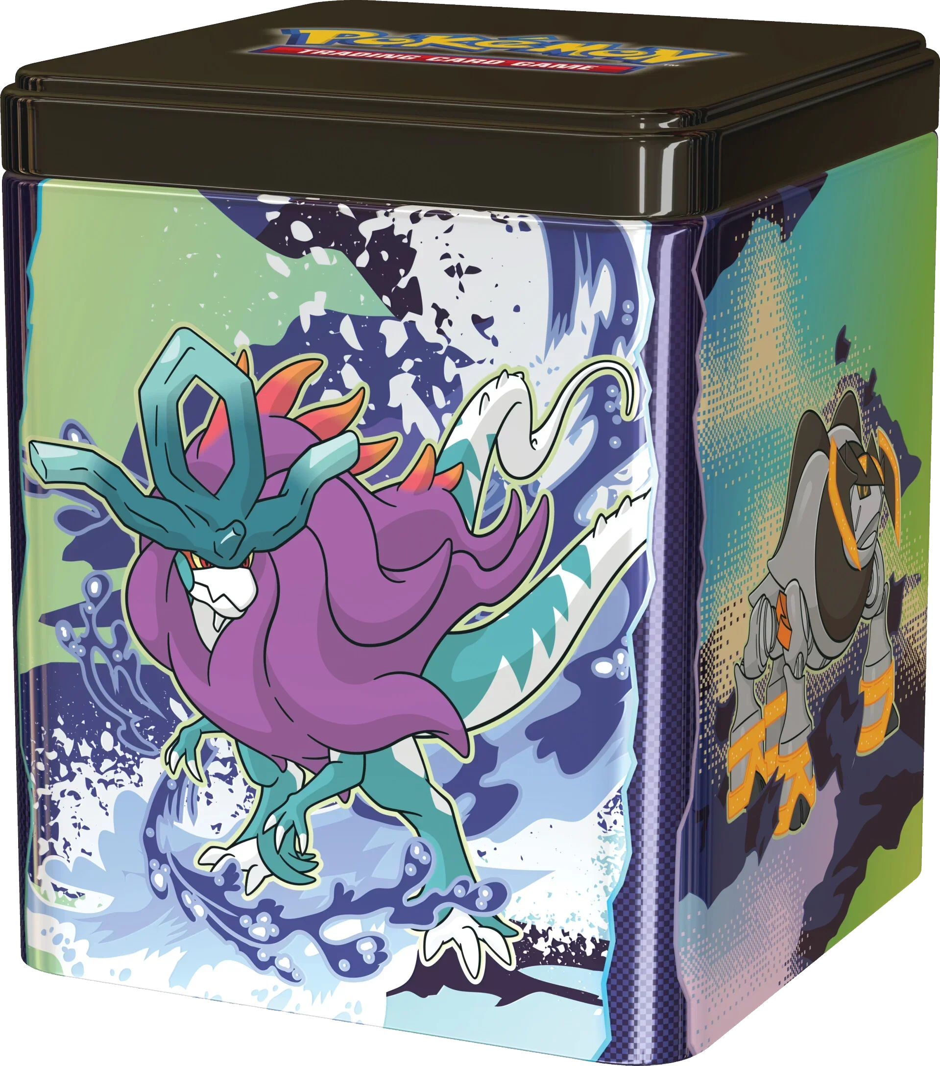 Choose a tin with powerful Pokémon from Paldea or Kitakami: the fearsome Treasures of Ruin, mysterious Paradox Pokémon, or feisty Ogerpon and its masks! This handy Pokémon TCG: Stacking Tin stacks neatly with others and contains: